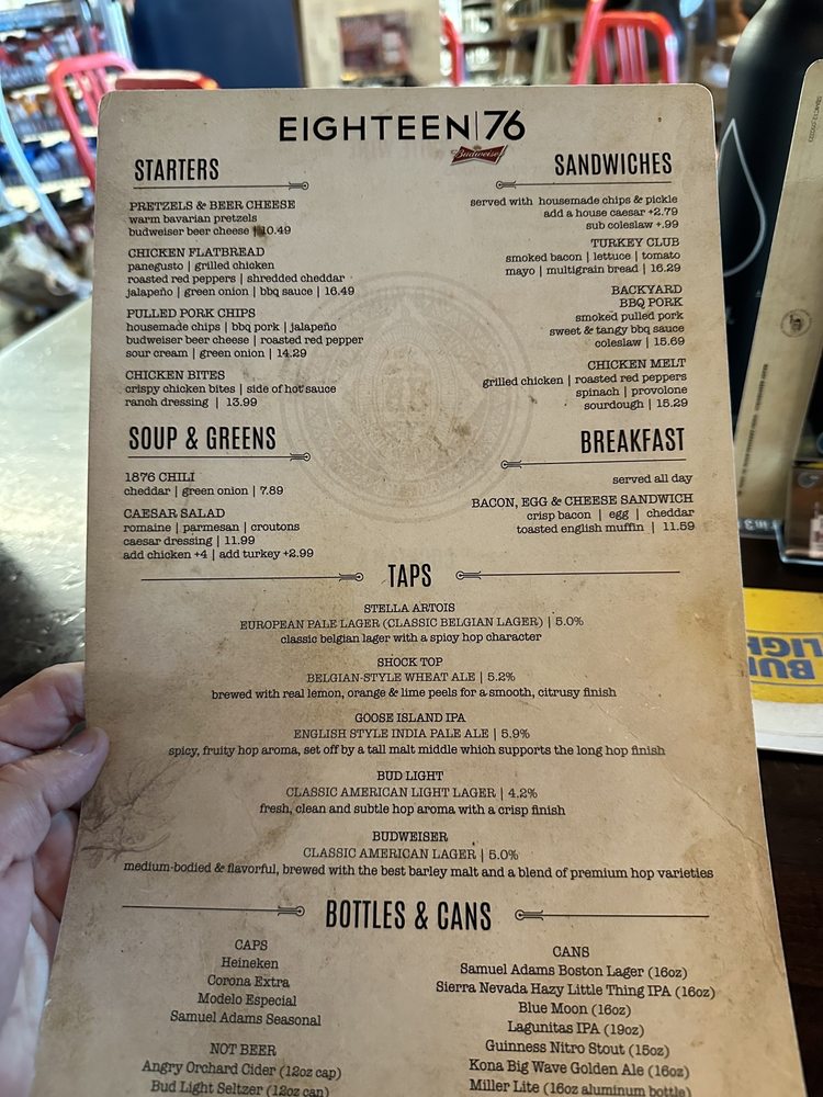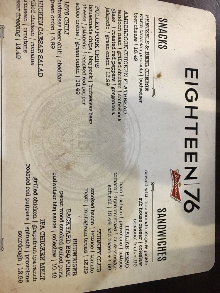 Overall, Eighteen76 provides a pleasant dining experience with good service and tasty dishes like the chicken Caesar salad and BBQ pork sandwich. Whether you're looking for a quick bite or a laid-back spot to enjoy a meal, Eighteen76 has something to offer for everyone.